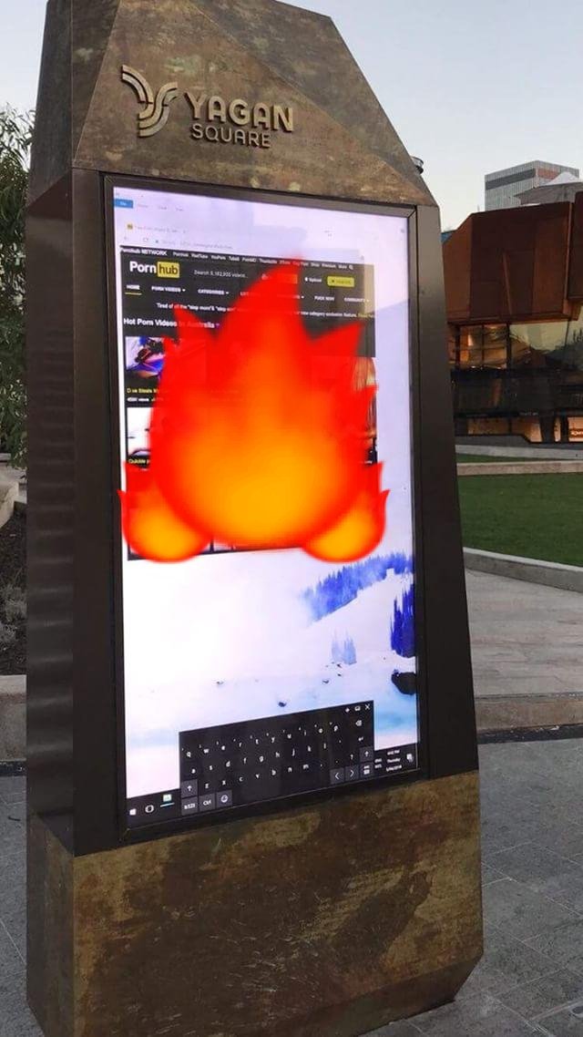 And on Thursday night, hackers took over Yagan Square's two electronic billboards to display porn site Pornhub onto them.